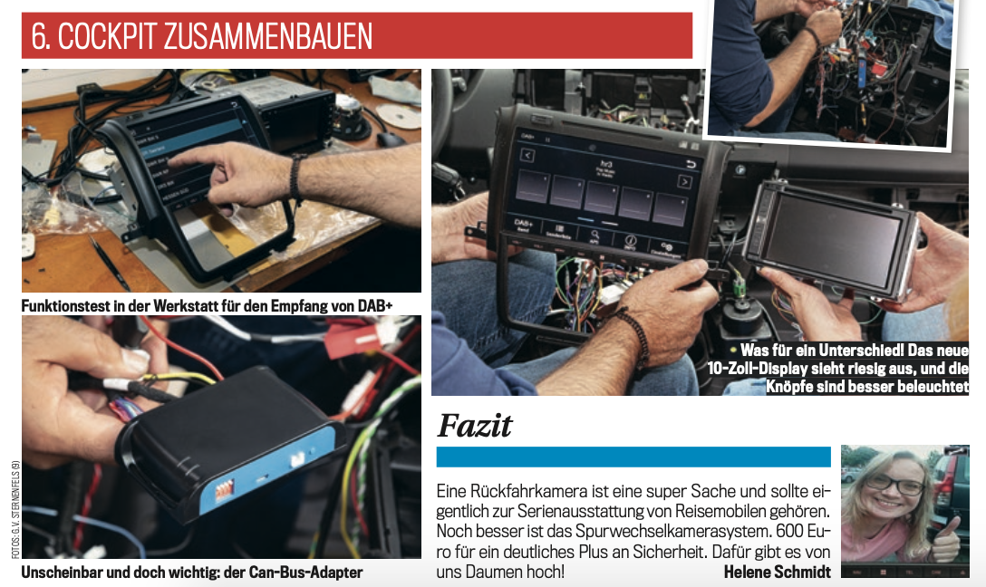 "Eine Rückfahrkamera ist eine super Sache und sollte eigentlich zur Serienausstattung von Reisemobilen gehören. Noch besser ist das Spurwechselkamerasystem. 600 Euro für ein deutliches Plus an Sicherheit. Dafür gibt es von uns Daumen hoch!"